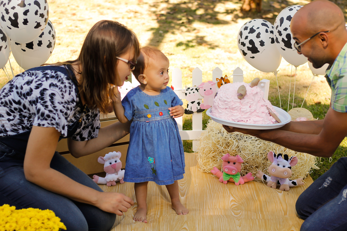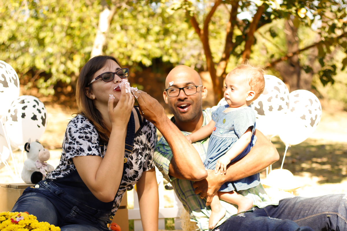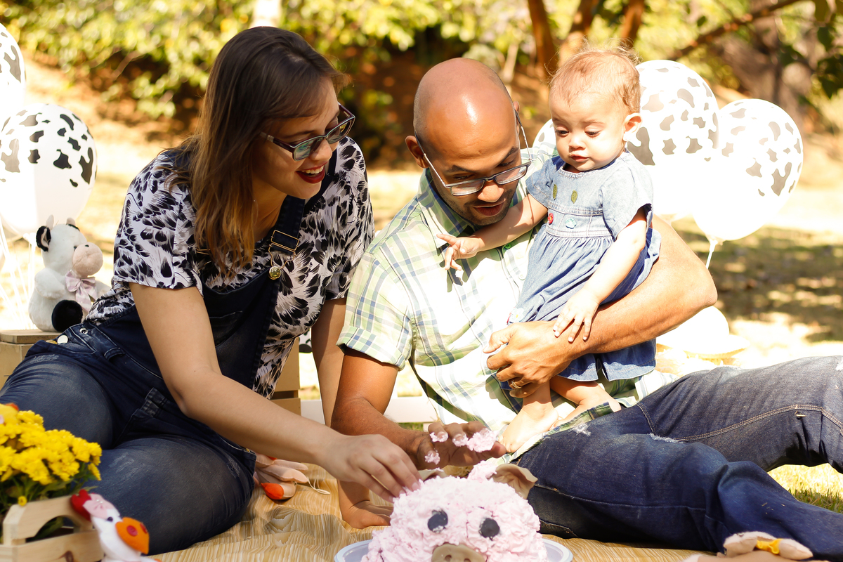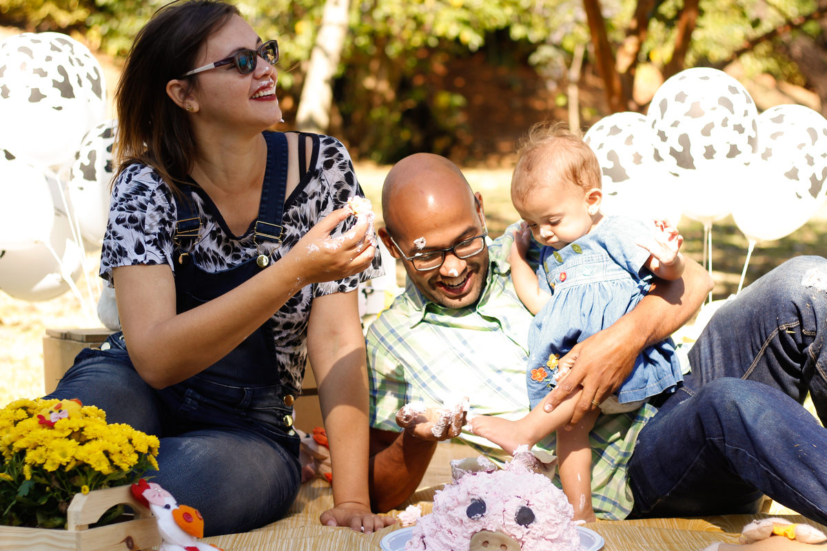 Smash the cake da Esther com os papais, Flávia e Rogério e a vovó.